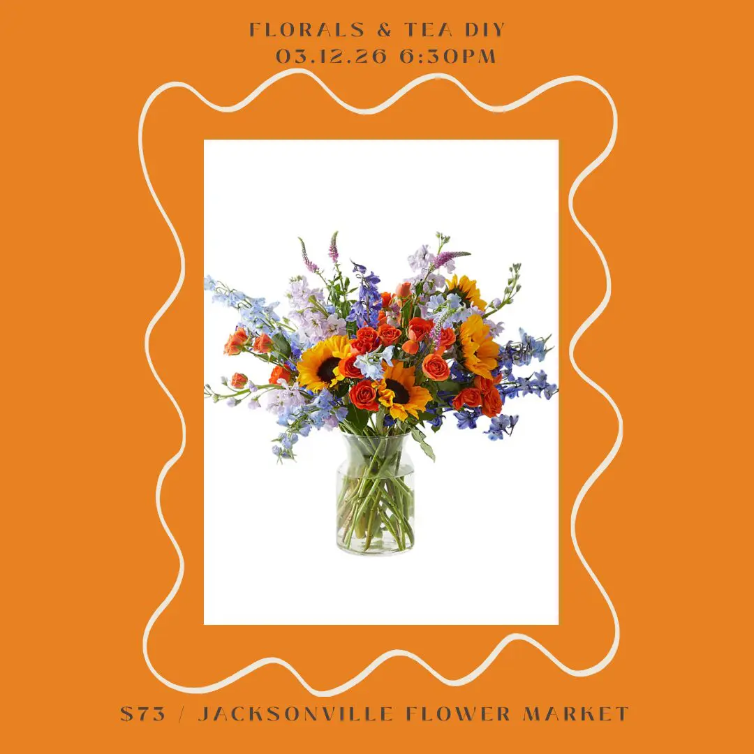 Not only will you leave with a gorgeous floral creation, but you’ll also gain valuable skills that you can use to impress your friends and family with your newfound talent. So, grab your friends and join us for a delightful evening of flower arranging and laughter during the Florals and Tea DIY Class at the Jacksonville Flower Market!